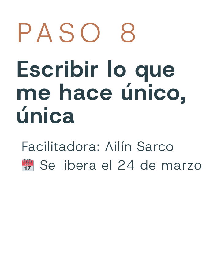Uno por cada paso, con propuestas, preguntas y ejercicios emocionales que acompañan tu proceso de forma profunda y práctica.